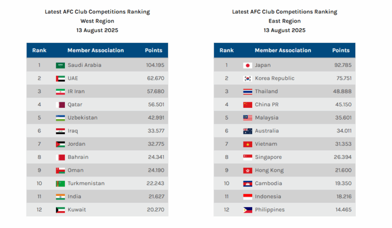 ក្រោយ​ចប់​រដូវ​កាល ២០២៤-២៥ កម្ពុជា រក​បាន ១៩.៣៥០​ពិន្ទុ នៅ​ពី​លើ ឥណ្ឌូណេស៊ី (១៨.២១៦​ពិន្ទុ) និងហ្វីលីពីន (១៤.៤៦៥​ពិន្ទុ) ដោយ​​មាន​តែ​ក្លិប​ព្រះ​ខ័ន​រាជ​ស្វាយរៀង​​មួយ​គត់​​លេង​ពាន​អាស៊ី។ ចូល​រដូវ​កាល​ថ្មី កម្ពុជា​មាន​ក្លិប​២ ដូច្នេះ​កម្ពុជា​នឹង​កាន់​កើន​ឡើង​​ពិន្ទុ ប្រសិន​បើ​ធ្វើ​បាន​ល្អ​ទៀត។